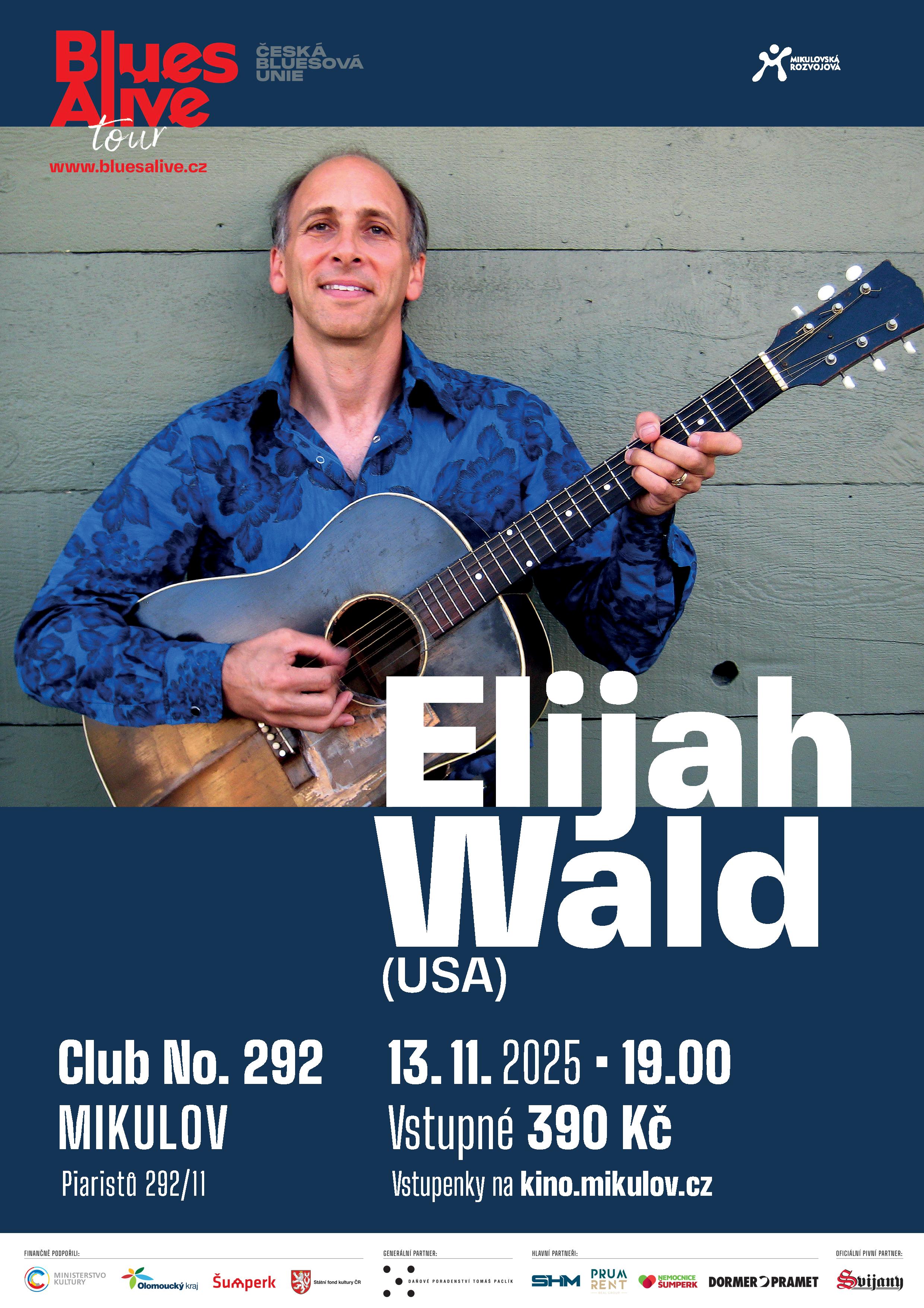 Populární Blues Alive tour se i v roce letošním, již počtvrté, vrací do Mikulova. Po předchozích, beznadějně vyprodaných mikulovských koncertech, se letos do našeho města chystá fenomenální kytarista a zpěvák Elijah Wald, jenž se narodil v roce 1959 ve Spojených státech, konkrétně ve státě Massachusetts a už v raném věku – inspirován osobnostmi jako Woody Guthrie, Mississippi John Hurt či Dave Van Ronk – začal veřejně vystupovat. Jeho zájem o tradiční i světovou hudbu ho přivedl ke studiu etnomuzikologie a k hlubšímu poznávání hudebních kultur napříč kontinenty. Wald je ceněným publicistou a hudebním historikem. Jeho práce byla oceněna řadou odborných uznání, včetně ceny Grammy za doprovodný text k CD box setu The Arhoolie Foundation.
