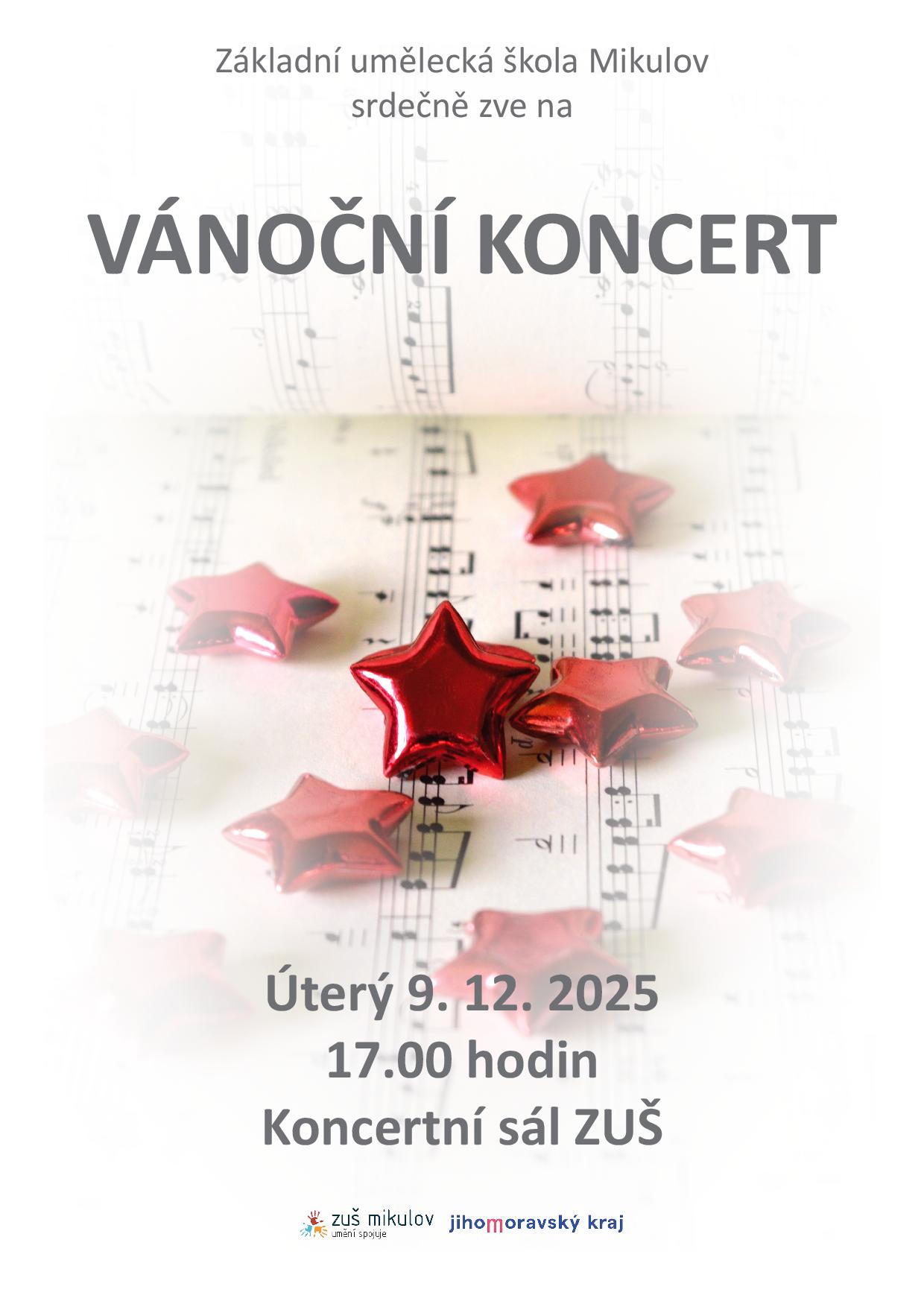 Vánoční žákovský koncert. Akce se koná od 17 hodin.