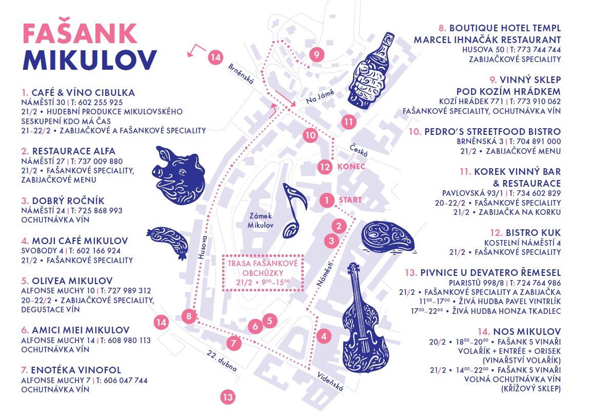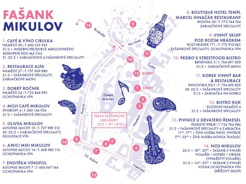 Přijeďte letos do Mikulova si užít bohatý fašankový program! Od 13. února se můžete těšit v místních restauracích na speciální menu v podobě zabijačkových specialit, ty jsou pro vás ve vybraných podnicích připraveny až do neděle 22. února.
