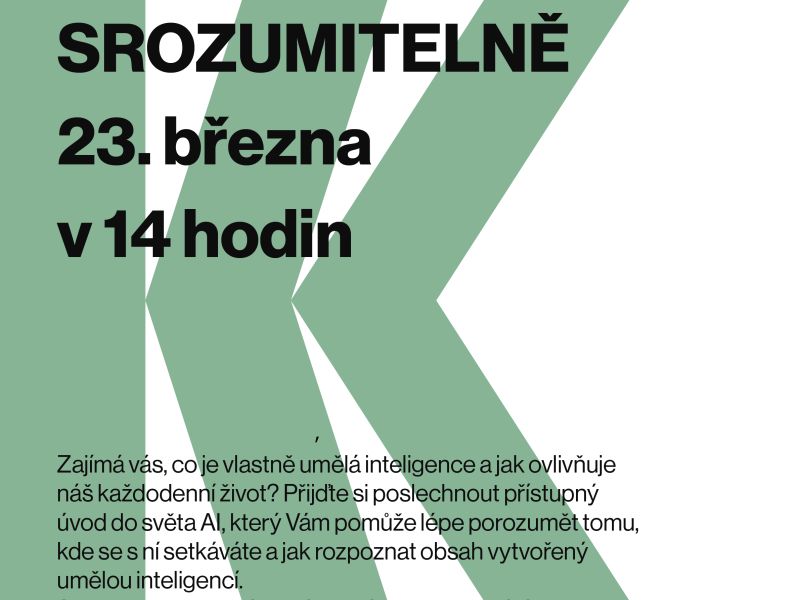 Setkáváte se s umělou inteligencí častěji, než si možná myslíte. Víte, jak ji poznat a jak funguje? Zveme Vás na přednášku, která nabídne srozumitelný úvod do tématu AI. Dozvíte se, kde všude se s ní můžete potkat, jak je integrována do běžného života a jak rozpoznat obsah, který byl vytvořen umělou inteligencí.