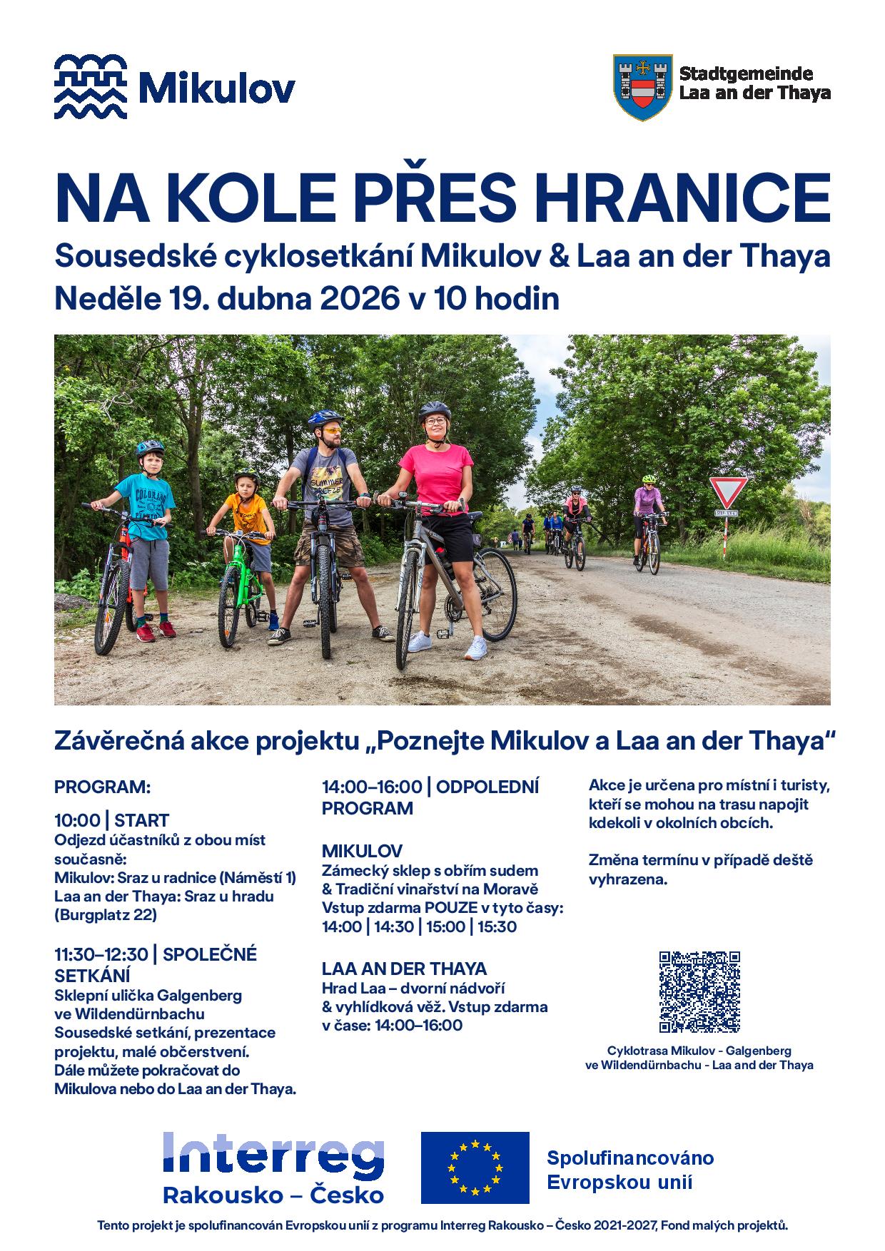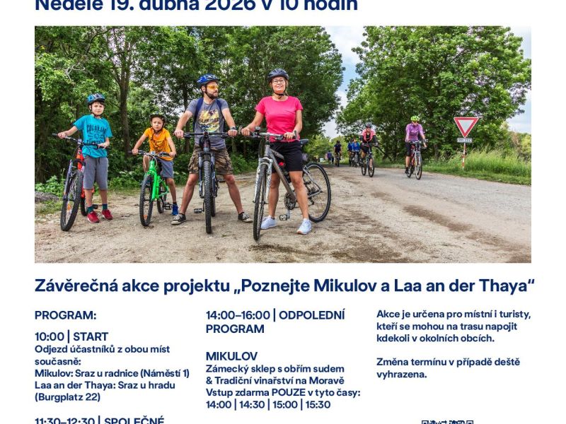 Na kole k sousedům: Společná jízda Mikulov & Laa Objevte kouzlo jarního příhraničí. Přidat se můžete k sousedskému cyklosetkání a šlápnout do pedálů společně s námi.